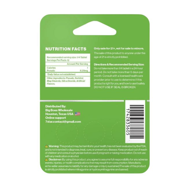 7 STAR 7-Hydroxymitragynine + Pseudo 25MG Tablets combine the power of two potent compounds for a premium wellness experience. Each tablet contains a powerful 25MG dose of 7-Hydroxymitragynine, one of the most effective alkaloids in Kratom, along with Pseudo for added benefits. With 3 packs of 10 tablets per box, this product is designed for precise dosing and long-lasting use.
