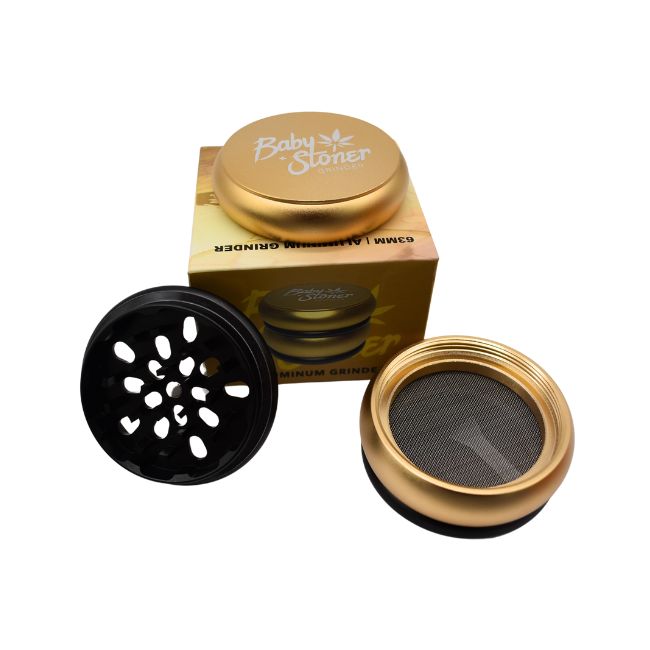 The Baby Stoner Aluminium 63mm x 44mm Grinder is an essential accessory for any herb enthusiast. With its durable construction, efficient grinding capability, and vibrant color options, this grinder is perfect for personal use or as a thoughtful gift. Available for just $9.99, upgrade your herb preparation experience today with the Baby Stoner Grinder!