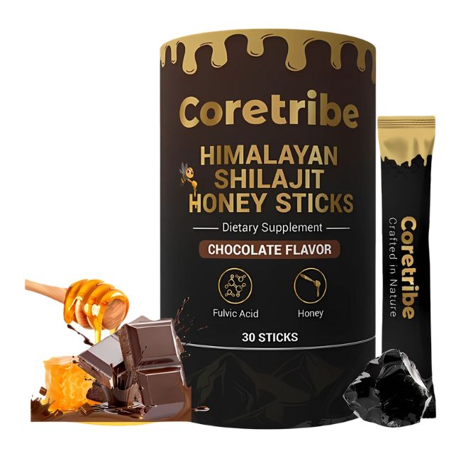 Unlock natural vitality and intimacy with CORETRIBE Himalayan Shilajit Honey Sticks, crafted to support sexual wellness, stamina, and overall energy. Each honey stick blends the ancient power of pure Himalayan Shilajit with natural honey, creating a delicious and convenient supplement for enhanced performance and vitality. Packed in a 30-count jar, these honey sticks are easy to enjoy on the go—whether as a quick boost before intimacy or as part of your daily wellness routine.