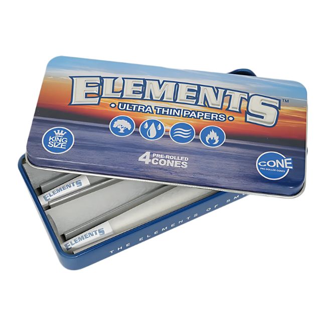 ELEMENTS LIMITED EDITION METAL KING SIZE CONE CASE TIN 4CT/ 12PK BOX