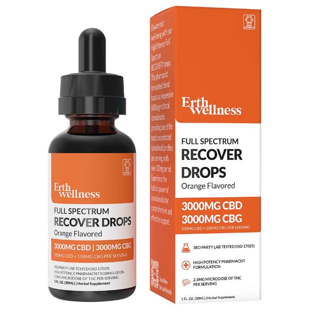 ERTH WELLNESS CBD + CBG RECOVER DROPS 6000MG 1FL.OZ (30ML)