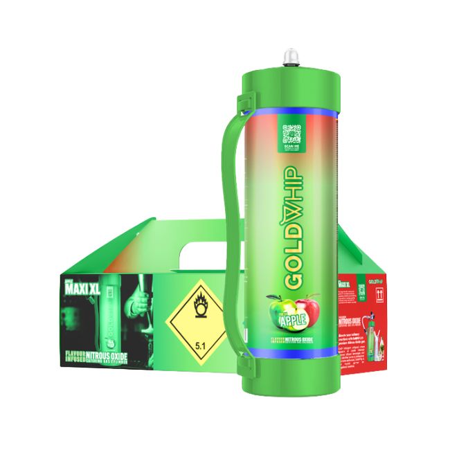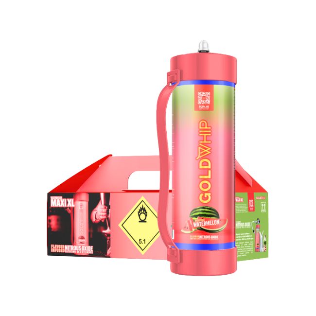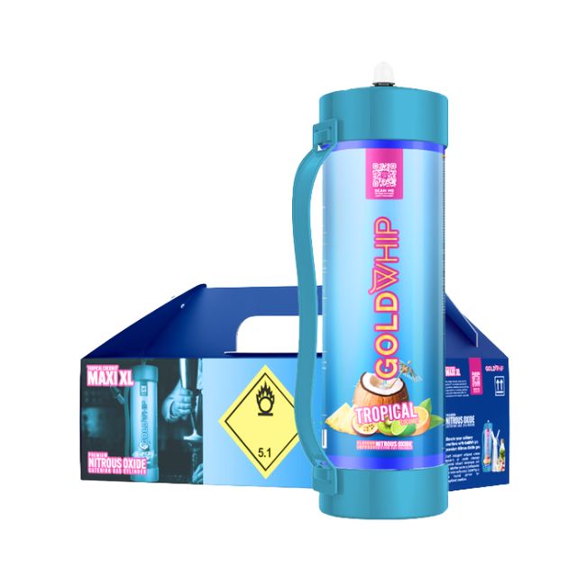The GOLD WHIP MAXI XL N2O Tank Charger is a premium-grade 3KG / 4.42L N2O (nitrous oxide) tank designed for high-volume cream dispensing. Packaged as 1CT per box, this food-grade product ensures consistent quality, maximum efficiency, and safe usage in kitchens, bars, and catering services.