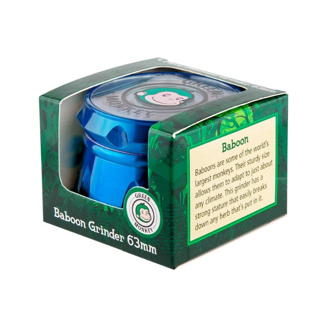 The Green Monkey 4-Part Baboon Grinder 63MM is built to handle your grind with strength, style, and precision. Whether you go for the energetic Blue or the bold Black, this grinder ensures smooth sessions and long-lasting performance.
