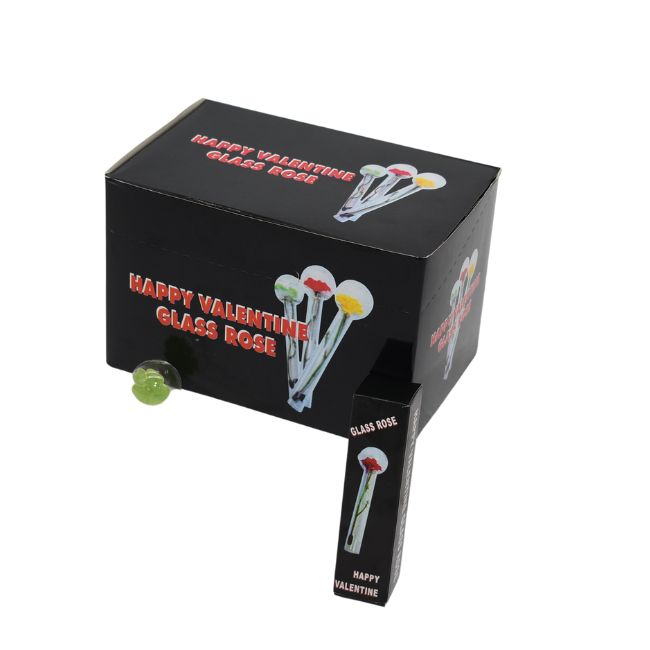 HAPPY VALENTINE GLASS ROSE 4INC (24 / BOX) ( 55618 )