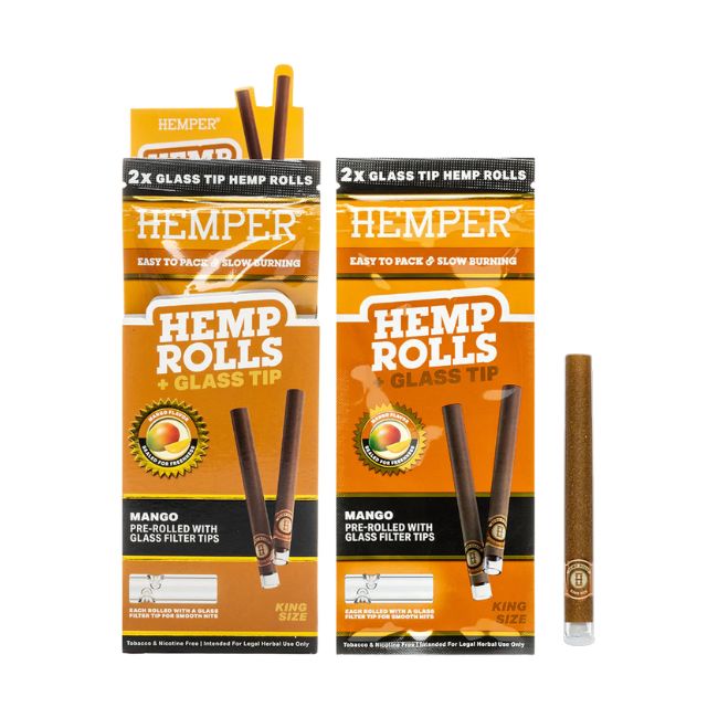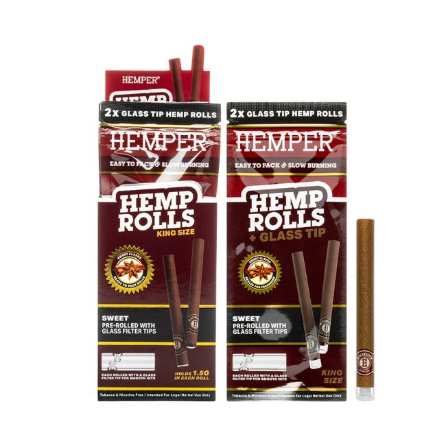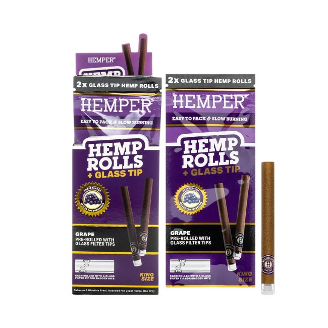 Introducing the Hemper Hemp King Size Rolls + Glass Tips 2pk 12ct/Box, the perfect smoking solution for those who value both convenience and quality. These king-size rolls are made from high-quality hemp, providing a smooth, natural smoking experience. Each roll comes with a glass tip, enhancing the airflow and preventing any unwanted particles, resulting in a clean, enjoyable session.