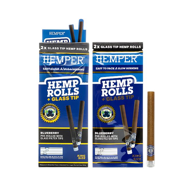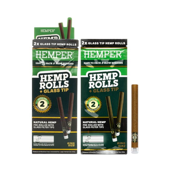 HEMPER HEMP KING SIZE ROLLS + GLASS TIPS 2PK 12CT/ BOX