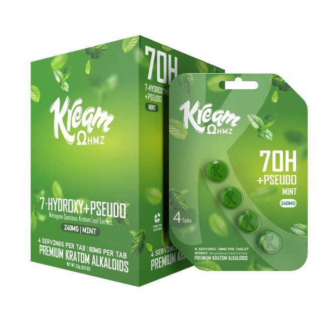 KREAM 7OH 7-HYDROXY + PSEUDO PREMIUM KRATOM ALKALOIDS 60MG PER TABLET 4PK 10CT/ BOX