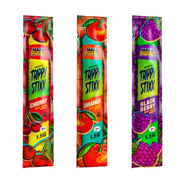 Product Description Experience the unique blend of flavor and potency with MAAD House Trippy Stixx Real MAAD Honey. Each box contains 10 packs of 5 Trippy Stixx, each infused with Real MAAD Honey for an exceptional, sweet, and potent experience. Available in a range of delicious flavors, these stixx provide both a satisfying taste and […]