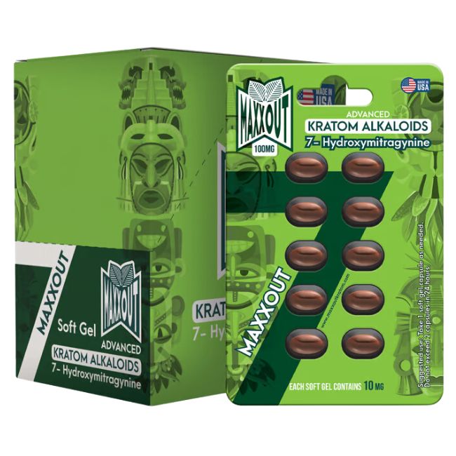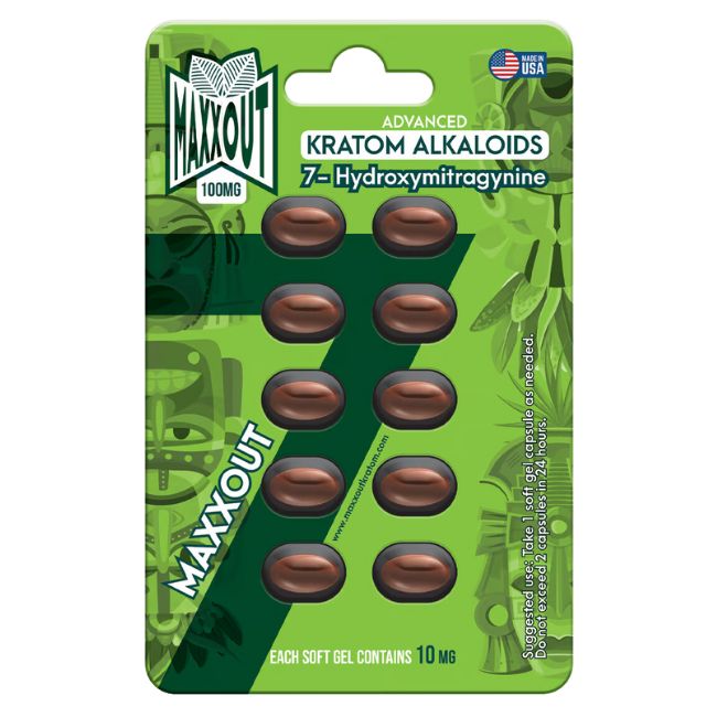 MAXX OUT 7-HYDROXY ADVANCED KRATOM ALKALOID 10MG PER SOFT GEL 10CT/10PK