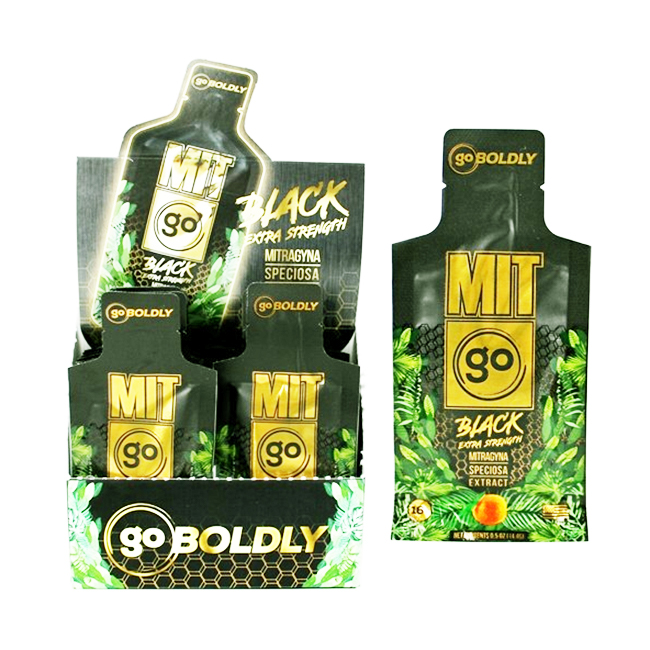 MIT GO-BLACK EXTRA STRENGTH LIQUID KRATOM POUCH( 12 CT / DISPLAY) Description Discover the ultimate potency and convenience with MIT Go-Black Extra Strength Liquid Kratom Pouch. Each pouch is meticulously crafted to provide an intense kratom experience in a convenient and portable form. Harnessing the power of premium kratom extract, our formula delivers unparalleled strength for those seeking maximum benefits. Elevate your kratom journey with MIT Go-Black and experience the pinnacle of potency and convenience. Features Extra Strength Formula: Formulated with a potent blend of premium kratom extract for maximum effectiveness. Liquid Formulation: Easy-to-consume liquid pouch for quick absorption and…