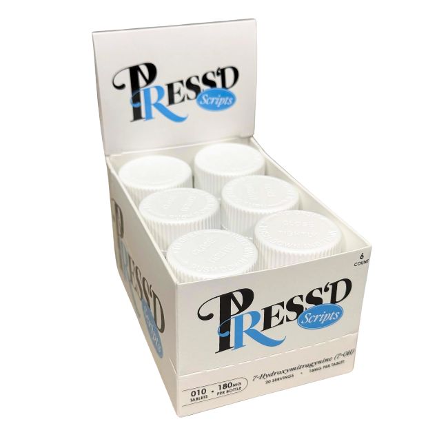 PRESSD SCRIPTS 7-HYDROXYMITRAGYNINE 18MG PER TABLET 10PK JAR 6CT/ BOX
