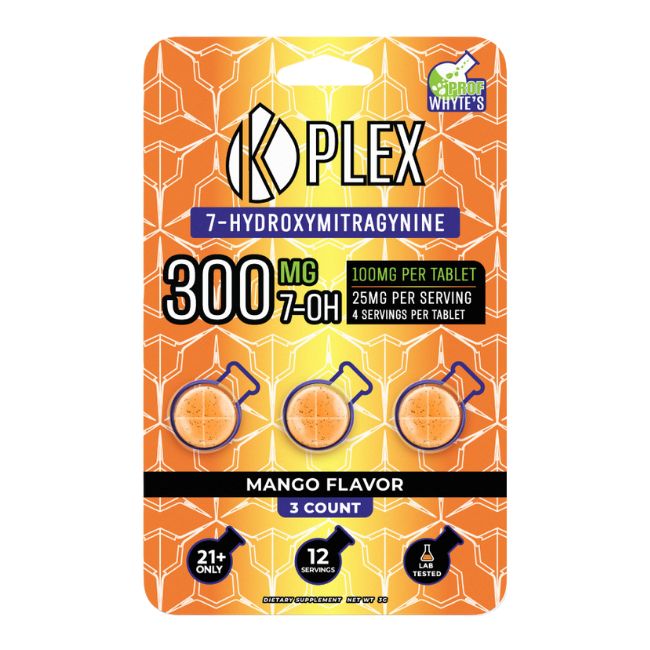 Prof Whyte’s K Plex 7-Hydroxy tablets are designed to deliver a powerful and effective botanical wellness solution in a convenient, easy-to-use form. Each tablet contains 100mg of 7-Hydroxy, crafted for consistent potency and reliability. Perfect for those seeking a fast-acting and discreet option, these tablets come in a 3-pack, with 10 packs per display box, making them ideal for both individual users and retail distribution.