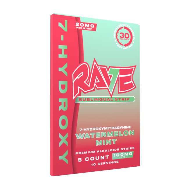 Designed for those who want a quick, discreet, and easy-to-consume supplement, the RAVE 7-HYDROXY STRIP is perfect for anyone looking to enhance their mental focus, energy, and overall performance. With each pack containing 5 strips (10 strips per box), you get a consistent and convenient supply to support your daily lifestyle. The unique sublingual strip dissolves under your tongue effortlessly, offering a smooth and enjoyable experience with a refreshing Watermelon Mint flavor.