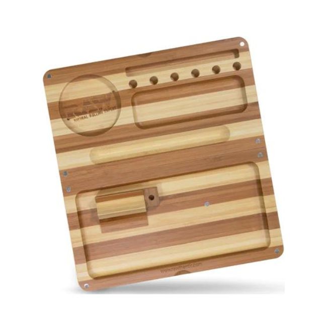 The RAW Bamboo Backflip Magnetic Rolling Tray is the ultimate rolling accessory for anyone looking for a blend of style, functionality, and eco-friendliness. Its innovative magnetic design, durable bamboo construction, and portable size make it perfect for both home use and travel. With compartments to keep your essentials organized and a smooth surface for easy rolling, this tray is an essential tool for a seamless rolling experience. Grab yours today and elevate your rolling game with RAW’s premium bamboo tray!