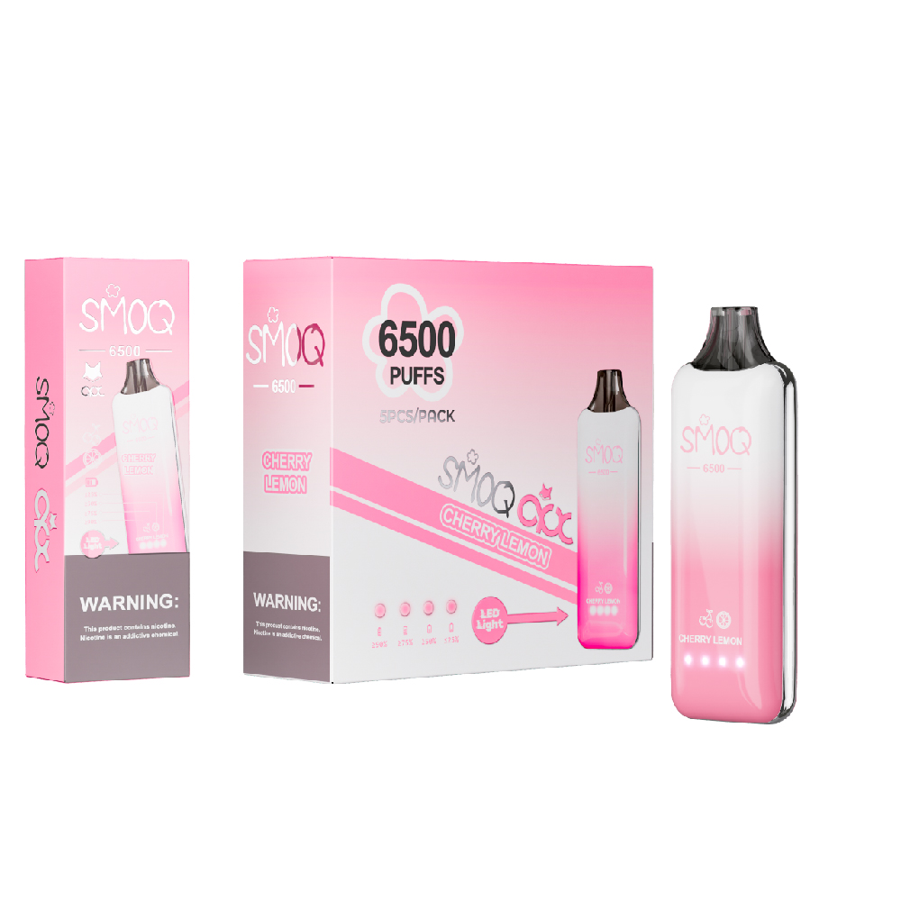 Flavor Variety: Indulge your taste buds with our diverse range of flavors, including Cherry Lemon, Cool Mint, Grape Soda, Gum Mint, Raspberry Lemon, and Strawberry Kiwi. Whether you prefer fruity or refreshing, SMOQ has something for everyone.