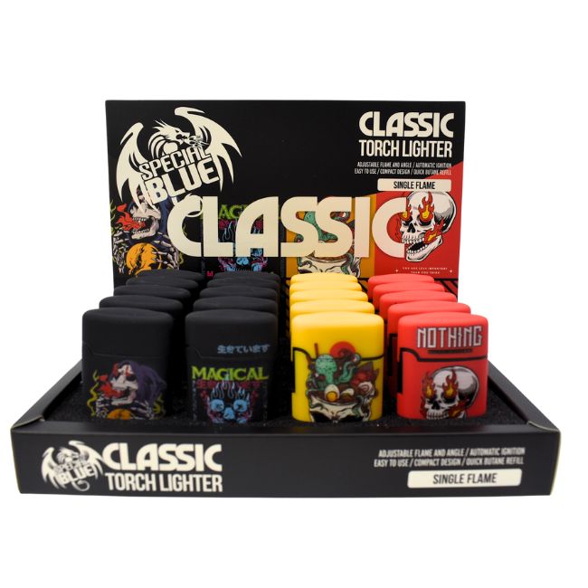Upgrade your smoke shop offerings with the SPECIAL BLUE Classic Skull & Roses II Torch Lighter (LT163M). This high-performance torch lighter combines eye-catching design with exceptional functionality, making it a must-have for smoking enthusiasts. Featuring a striking Skull & Roses motif, this lighter is perfect for those who appreciate both style and substance. Each box contains 20 premium torch lighters, ensuring your store is well-stocked to meet customer demands.