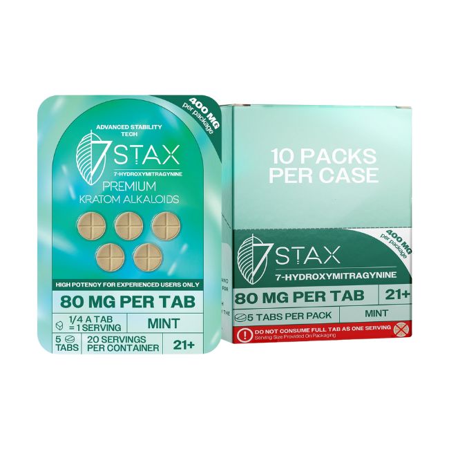 STAX 7-HYDROXY PREMIUM KRATOM ALKALOIDS 80MG PER TABLET 5PK 10CT/ BOX