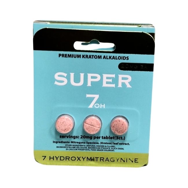 SUPER 7 HYDROXYMITRAGYNINE PREMIUM KRATOM ALKALOIDS 20MG PER TABLET 3PK 10CT/ BOX Â Description Elevate your wellness routine with SUPER 7 Hydroxymitragynine Premium Kratom Alkaloids. Each tablet is infused with 20mg of Hydroxymitragynine, a high-quality kratom alkaloid known for its potent and consistent effects. Available in convenient packs of 3 tablets and boxes containing 10 packs, […]