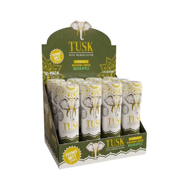 TUSK ULTRA PREMIUM GOLD KRATOM LIQUID 150MG MIT SHOT 2FL.OZ (57ML) 12CT/ BOX