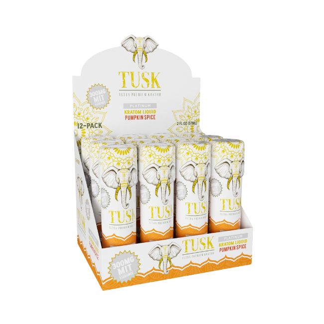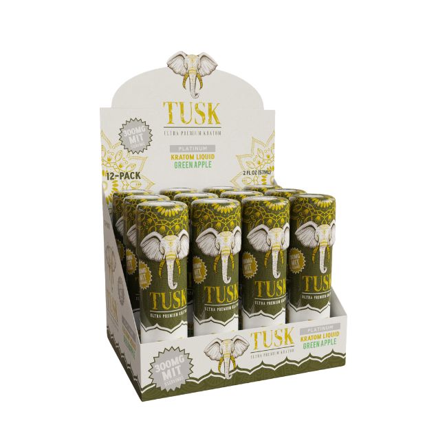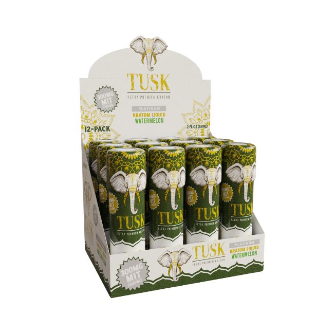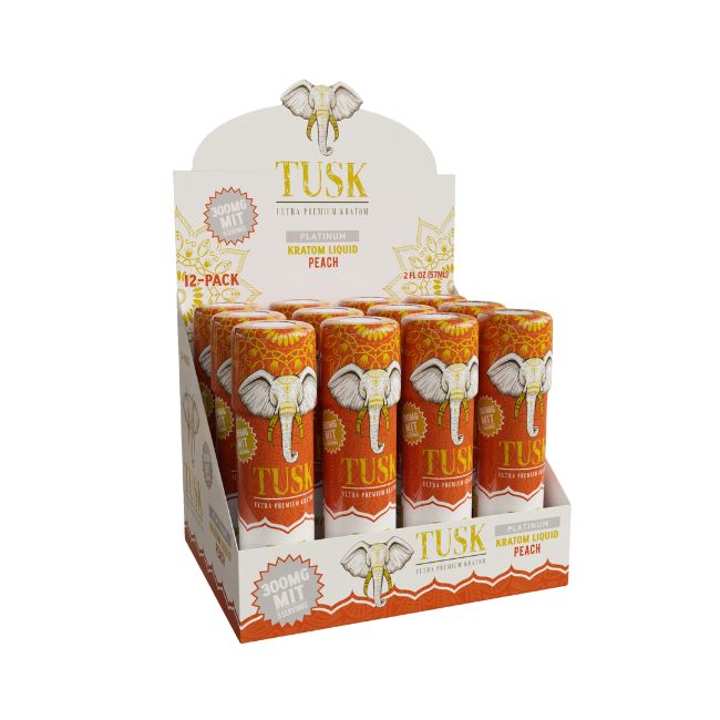 Tusk Ultra Premium Platinum Kratom Liquid 2fl.oz (57ml) 300mg Mit Shot 12ct/ Box offers a variety of flavors, providing a potent and flavorful option for kratom enthusiasts seeking a convenient and enjoyable kratom shot experience.