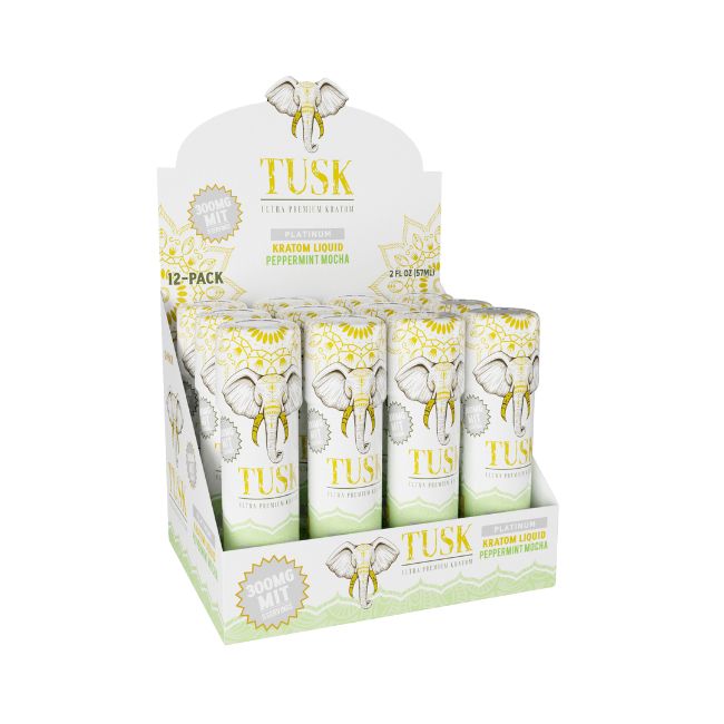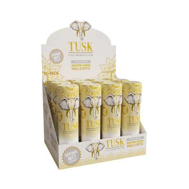 TUSK ULTRA PREMIUM PLATINUM KRATOM LIQUID 2FL.OZ (57ML) 300MG MIT SHOT 12CT/ BOX